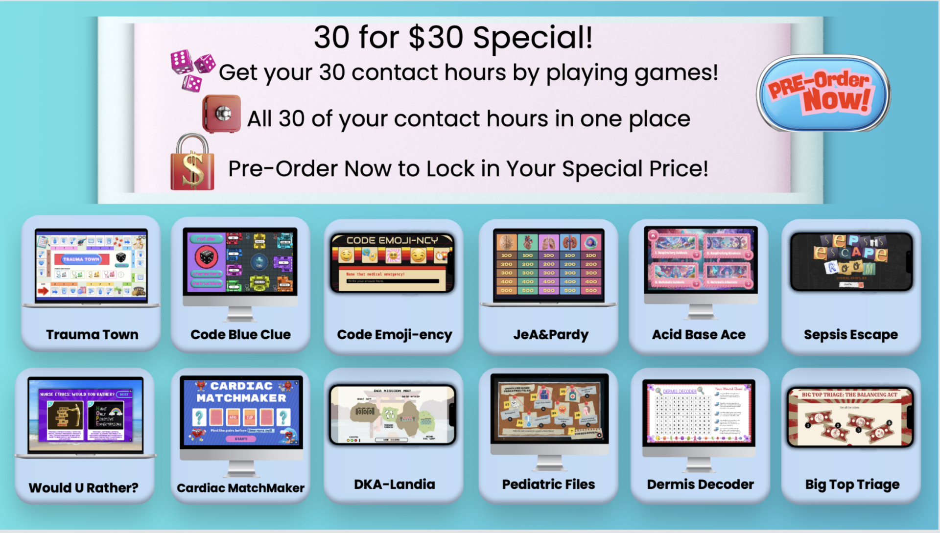 Earn all 30 Nursing Contact Hours with fun, stress-free games.